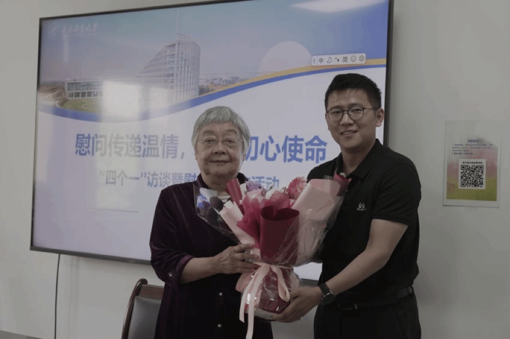 在友谊校区勇字楼702会议室组织开展“慰问传递温情,共话初心使命”四个一访谈暨慰问老同志活动,学院党委副书记樊文迪带队慰问学院退休教职工王彬教授,组织员杨文琪及学生代表参与本次活动。