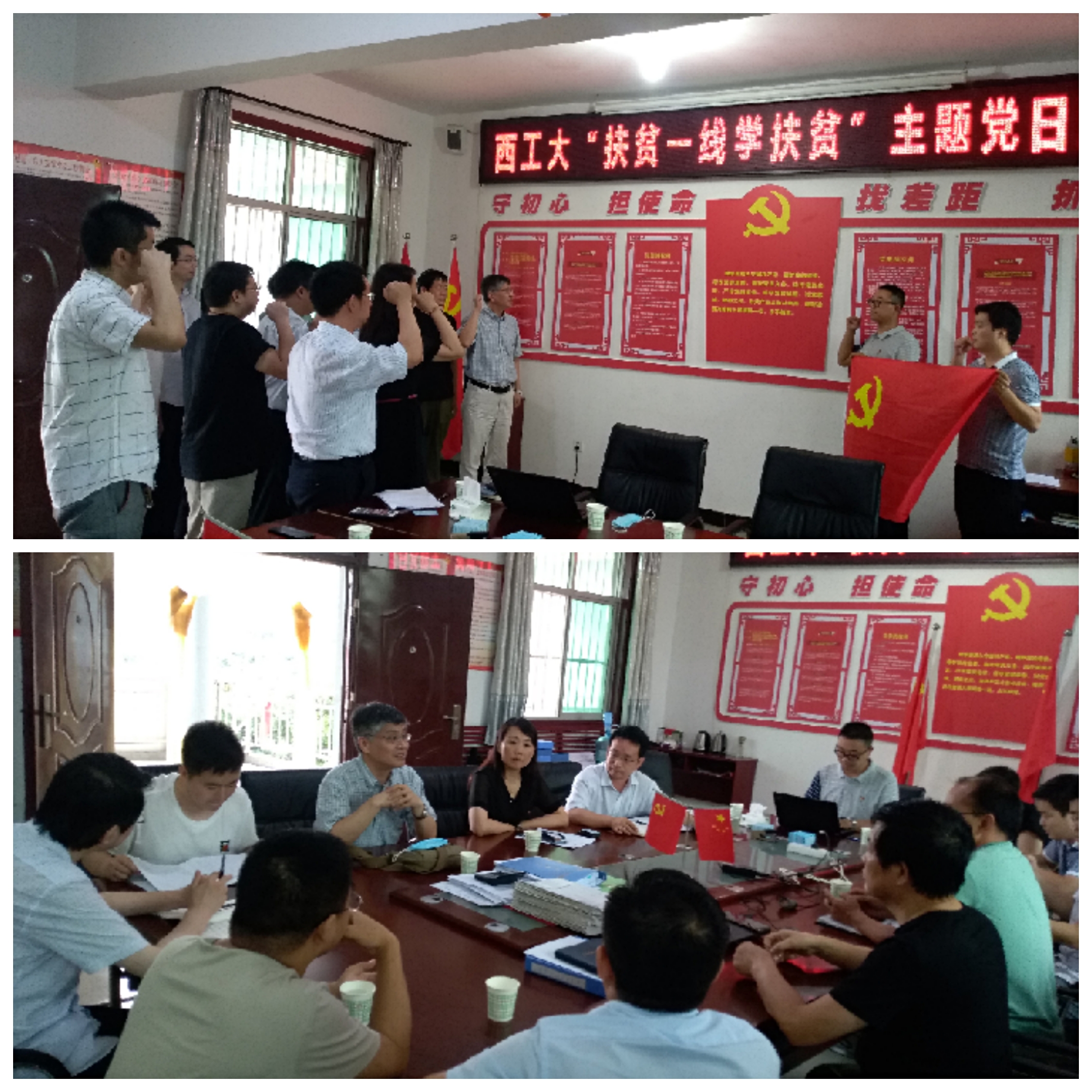 、化学与化工学院党委领导班子带领部分教师党支部书记、院办党员十余人赴鄠邑区余下街道灵山寺村开展主题为“扶贫一线学扶贫”的主题党日活动。西安市科技局派驻鄠邑区余下街道灵山寺村驻村工作队队长仇寅虎、西安市优秀驻村第一书记关盛元及相关工作人员参加会议。会议由物理学院副书记王洲航书记主持。
