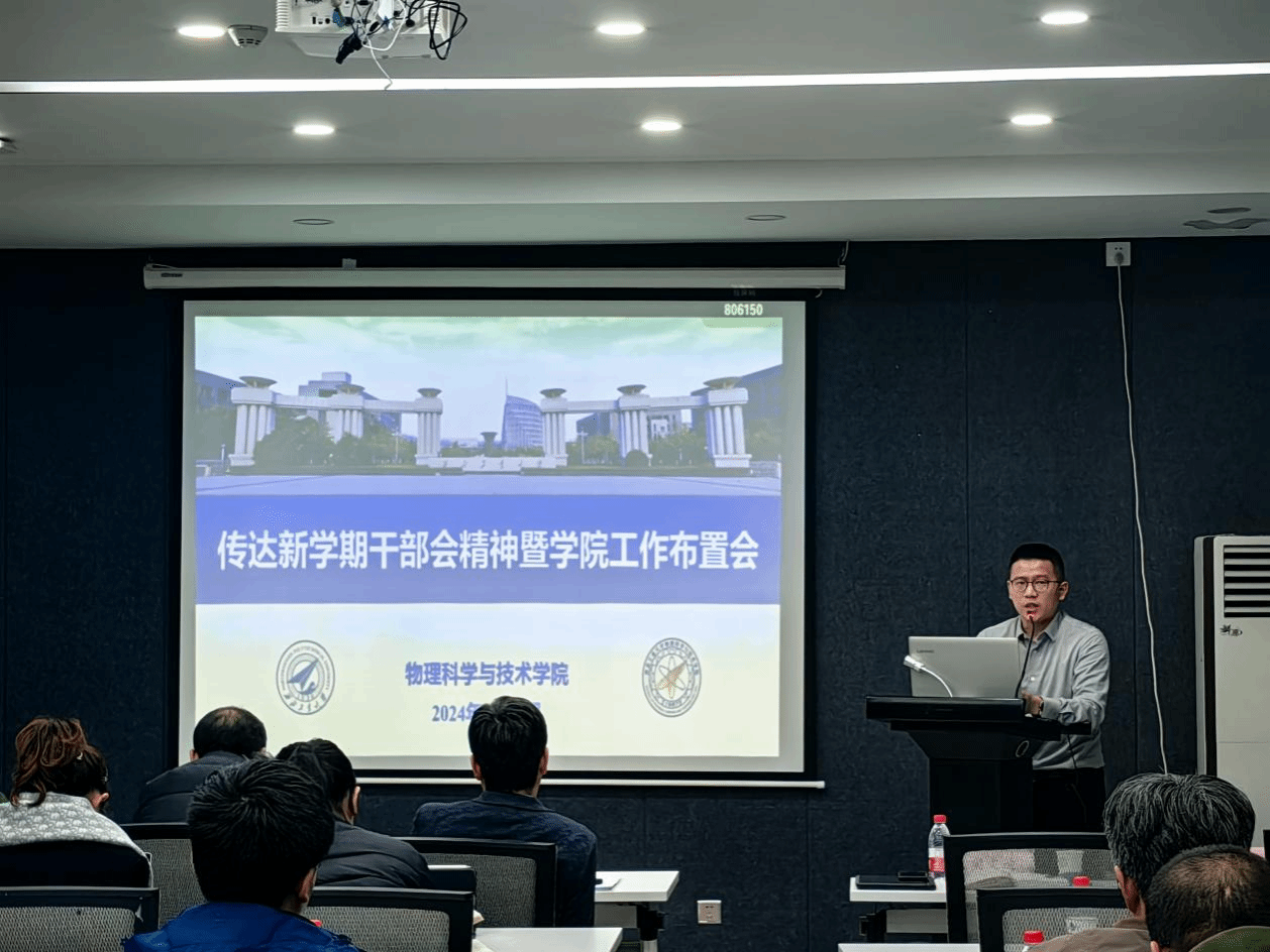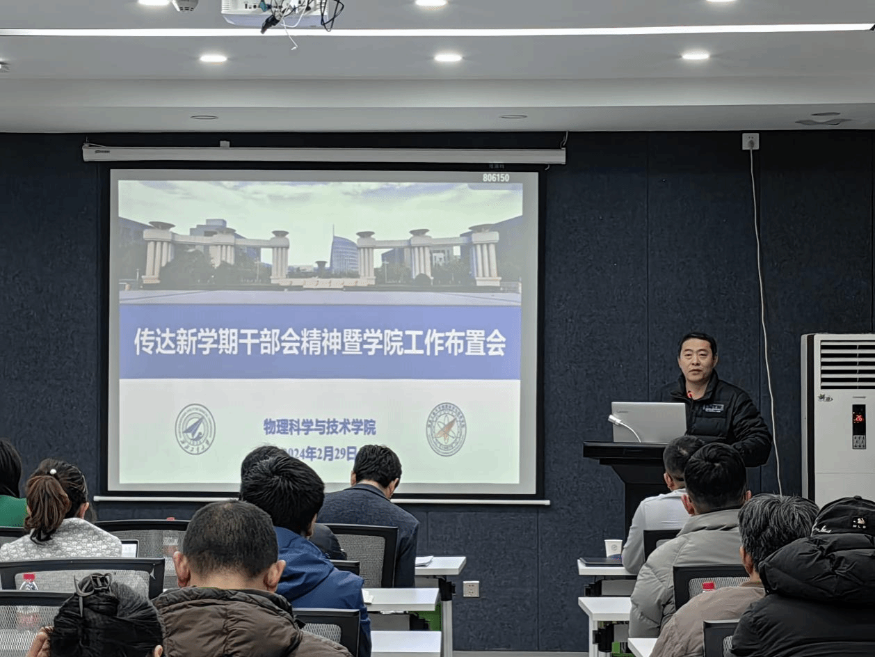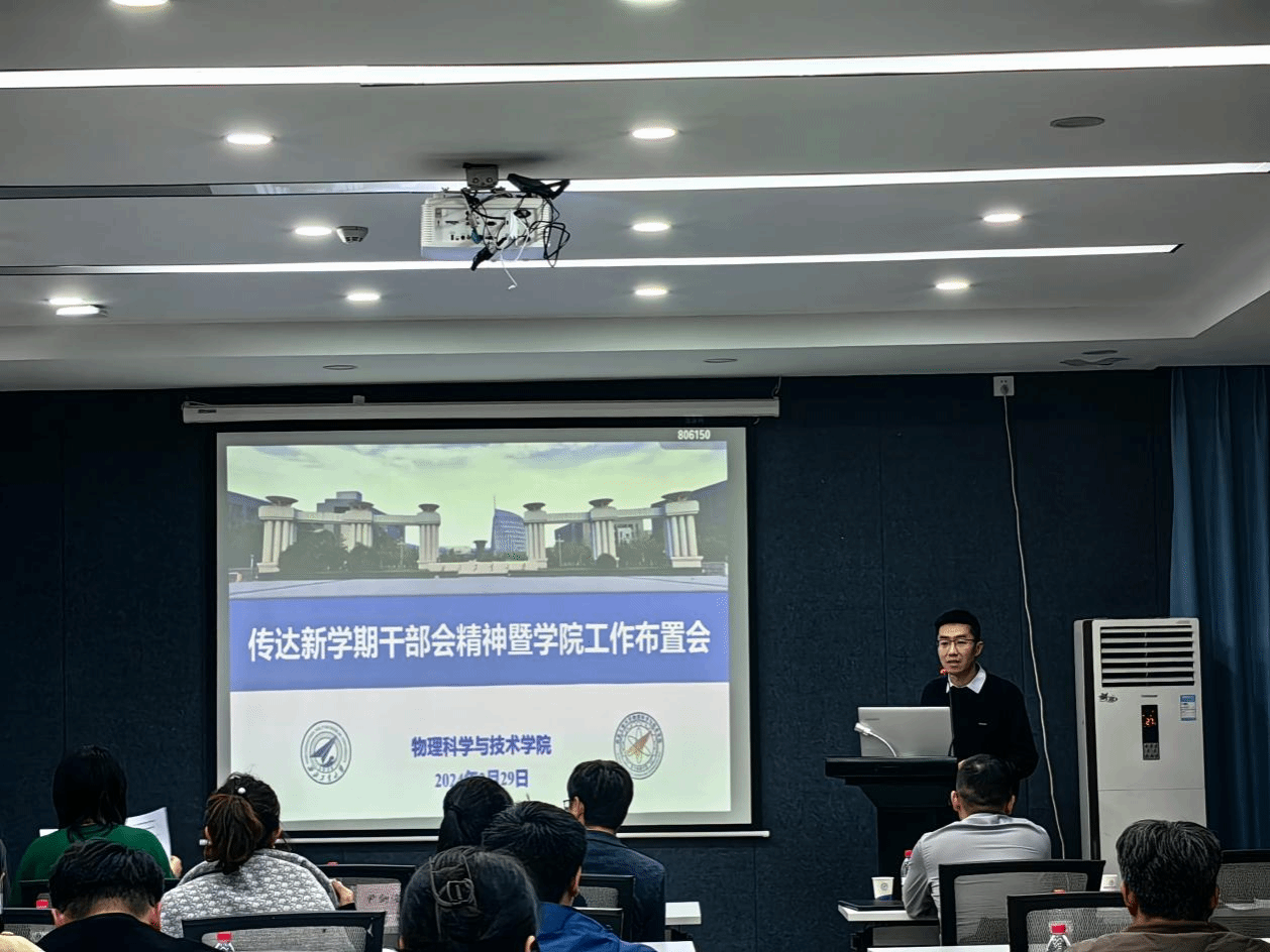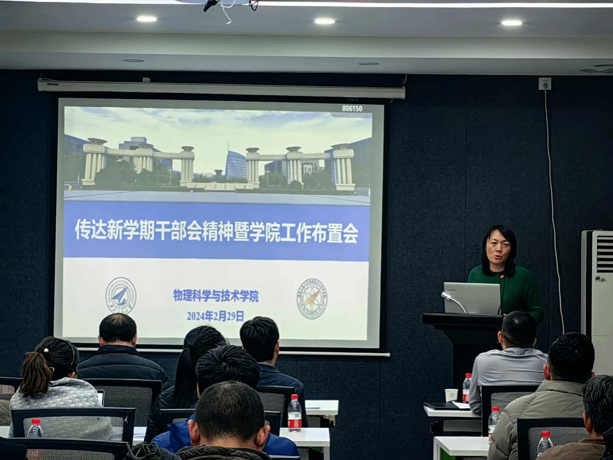 在学院楼353会议室召开新学期干部会精神宣贯暨重点工作部署会。学院领导班子成员、党委委员、系/中心(副)主任、教工党支部书记、团队负责人、班主任、辅导员及院办全体人员参加了此次会议。会议由学院党委书记晁小荣主持。