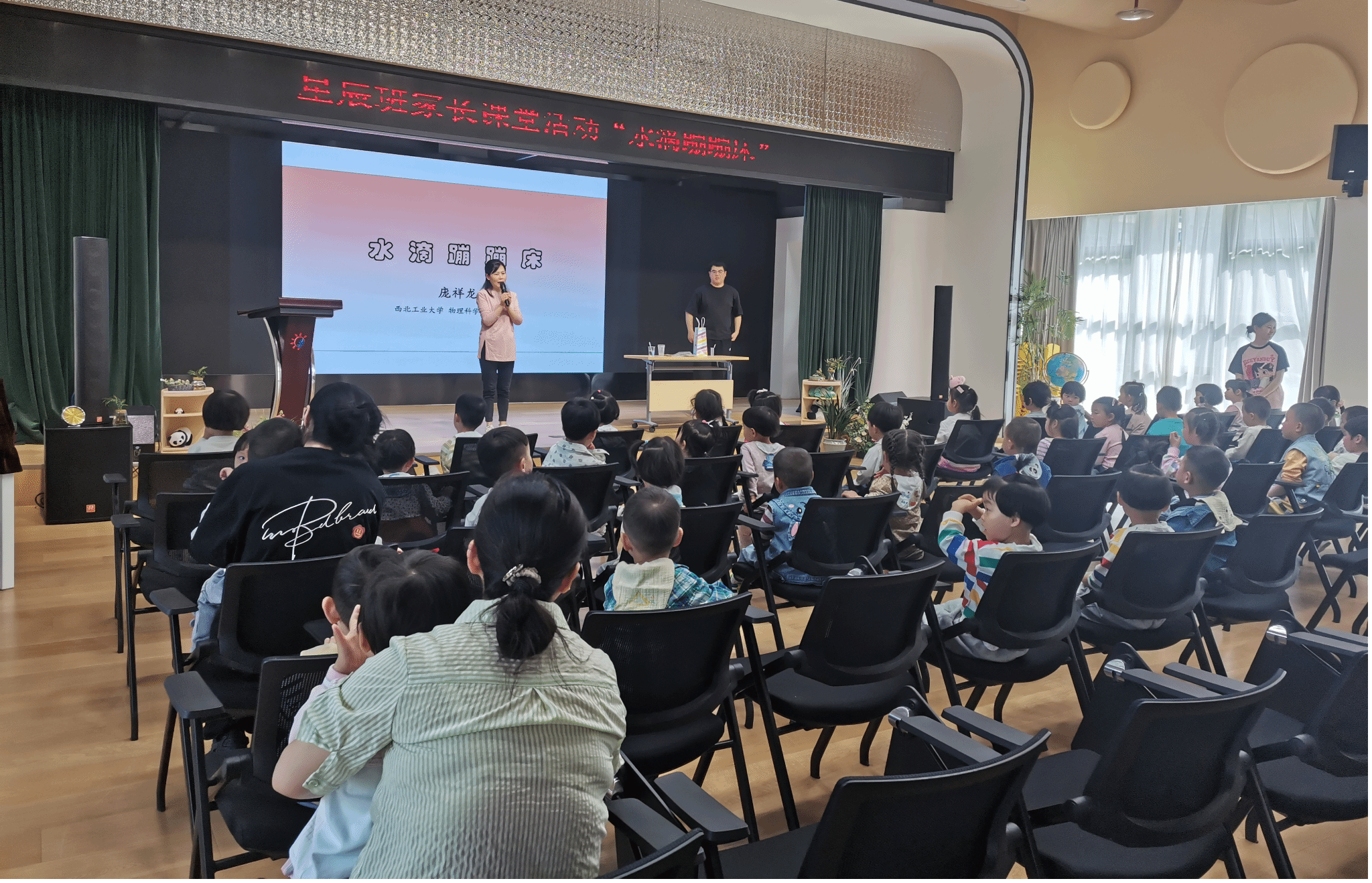 讲解趣味奇观,探索科学奥秘。为激发幼儿的科学探索兴趣,党支部书记毛珊,针对孩子们的年龄特点,专门设计了通俗易懂的科普教育与丰富有趣的互动环节。围绕“有趣的水”这个主题,向孩子们简单介绍了水的形态,通过生活中随处可见的一个个自然现象,讲解与“水”相关的各种知识,引导小朋友们理解“水”在生活中的重要性,一起探究“水”的奥秘,激发他们对自然现象的好奇心,促使他们对科学现象进行探索。