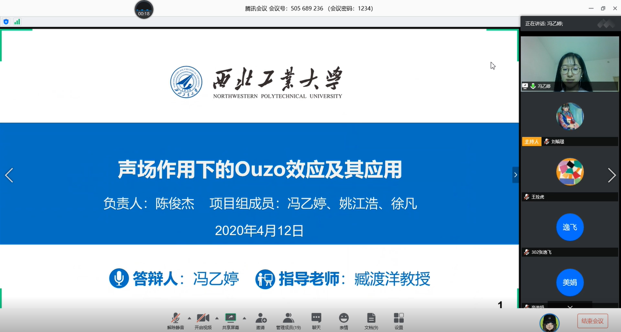的8位本科生同学:党润泽、冯乙婷、刘晨龙、张逸飞、王文璨、王文睿、赵梅梅、朱龙飞作为项目参与者,通过前期积极准备,从项目背景、执行情况、相关总结及项目创新点、经费执行情况等方面为我们展现了相关项目所获成果。会议答辩期间成人小说网