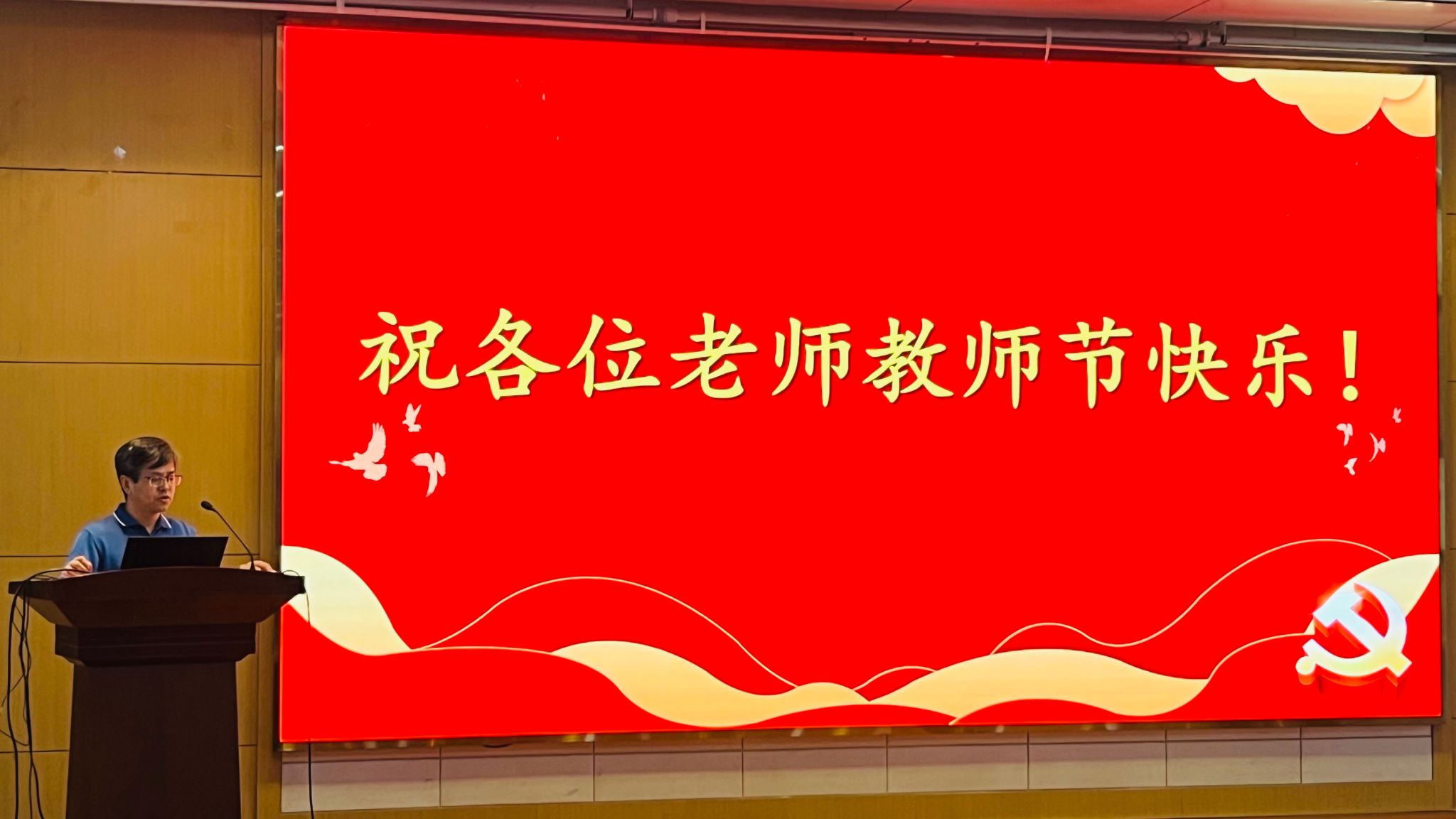 最后,晁小荣书记做总结讲话。他首先表达了对全体教师的节日祝福,接着对全体教职工提出三点要求:一是要观大势、把方向,持续深入学习贯彻党的二十届三中全会精神;二是要强特色、筑高峰,不断追求卓越,努力建设一流学院;三是要扬正气、守底线,立做四个“引路人”,切实做好师德师风、安全稳定及保密工作。希望全体教职工以习近平新时代中国特色社会主义思想为指导,深入学习贯彻党的二十届三中全会精神,凝心聚力、奋发进取,不断推动学院高质量发展。