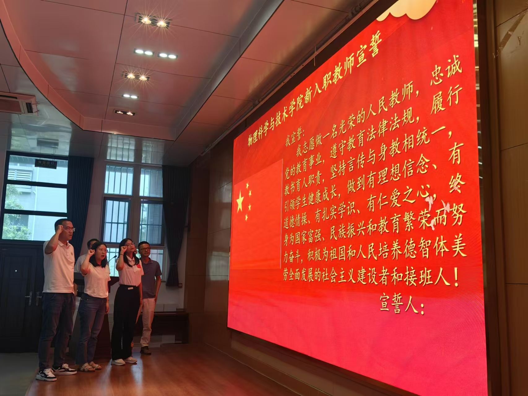 新进教师进行了入职宣誓仪式,承诺将秉持教育初心,为教育事业贡献力量。