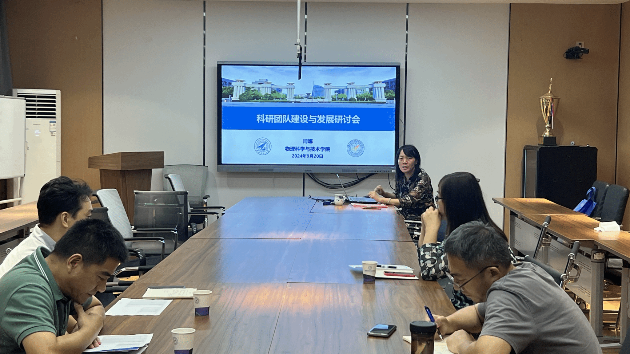 在理学院楼454会议室召开了科研团队建设与发展研讨会。副院长闫娜、凝聚态物理学科带头人金克新教授、声学学科学术骨干洪振宇教授、光学学科学术骨干刘亚红教授、温丹丹教授、樊元成教授等参会。会议由科研副院长闫娜主持。