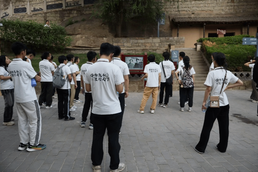 随后,师生们走进王家坪革命旧址。在中央军委礼堂以及领袖们曾经工作和生活的窑洞院落,师生们深切感受到扑面而来的历史厚重感。旧址内斑驳的墙壁与简朴的陈设,生动展现了那段艰苦卓绝且充满理想光辉的革命岁月。通过现场教学,师生们深入了解党中央在此运筹帷幄、决胜千里的历史细节,进一步深切体会到老一辈革命家胸怀天下、矢志报国的高尚家国情怀。最后,师生们开展沉浸式情景教学,感受延安作为革命精神灯塔的强大感召力。