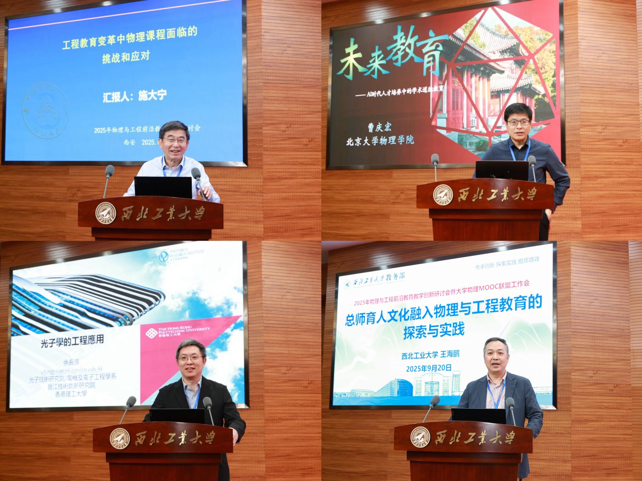 教务部部长王海鹏教授分别做了题为“工程教育变革中物理课程面临的挑战和应对”“AI时代拔尖人才培养中的学术道德教育:挑战和应对”“光子学的工程应用”及“总师育人文化融入物理与工程教育的探索与实践”的精彩报告,引发了与会学者的深入思考和热烈讨论。