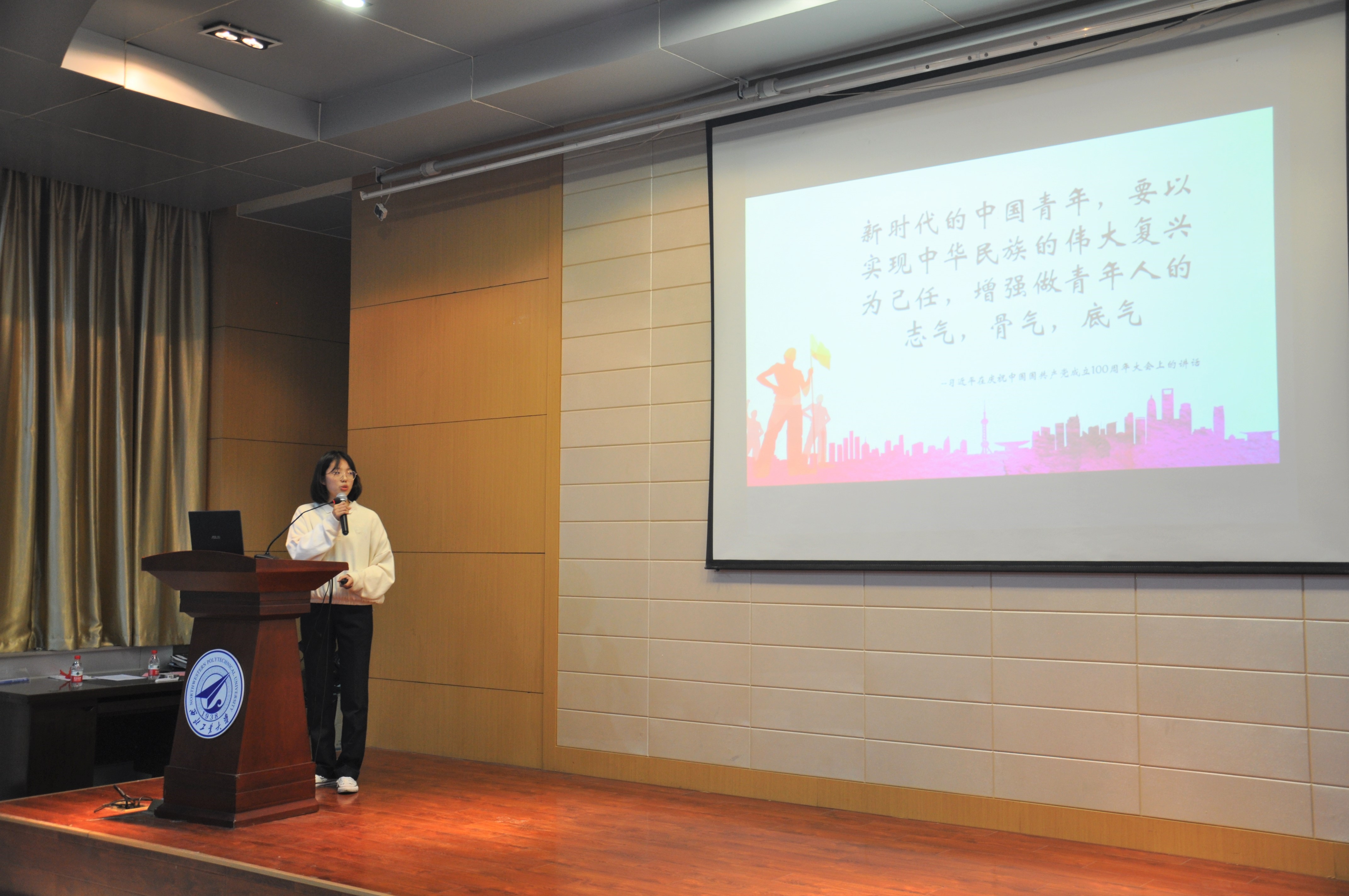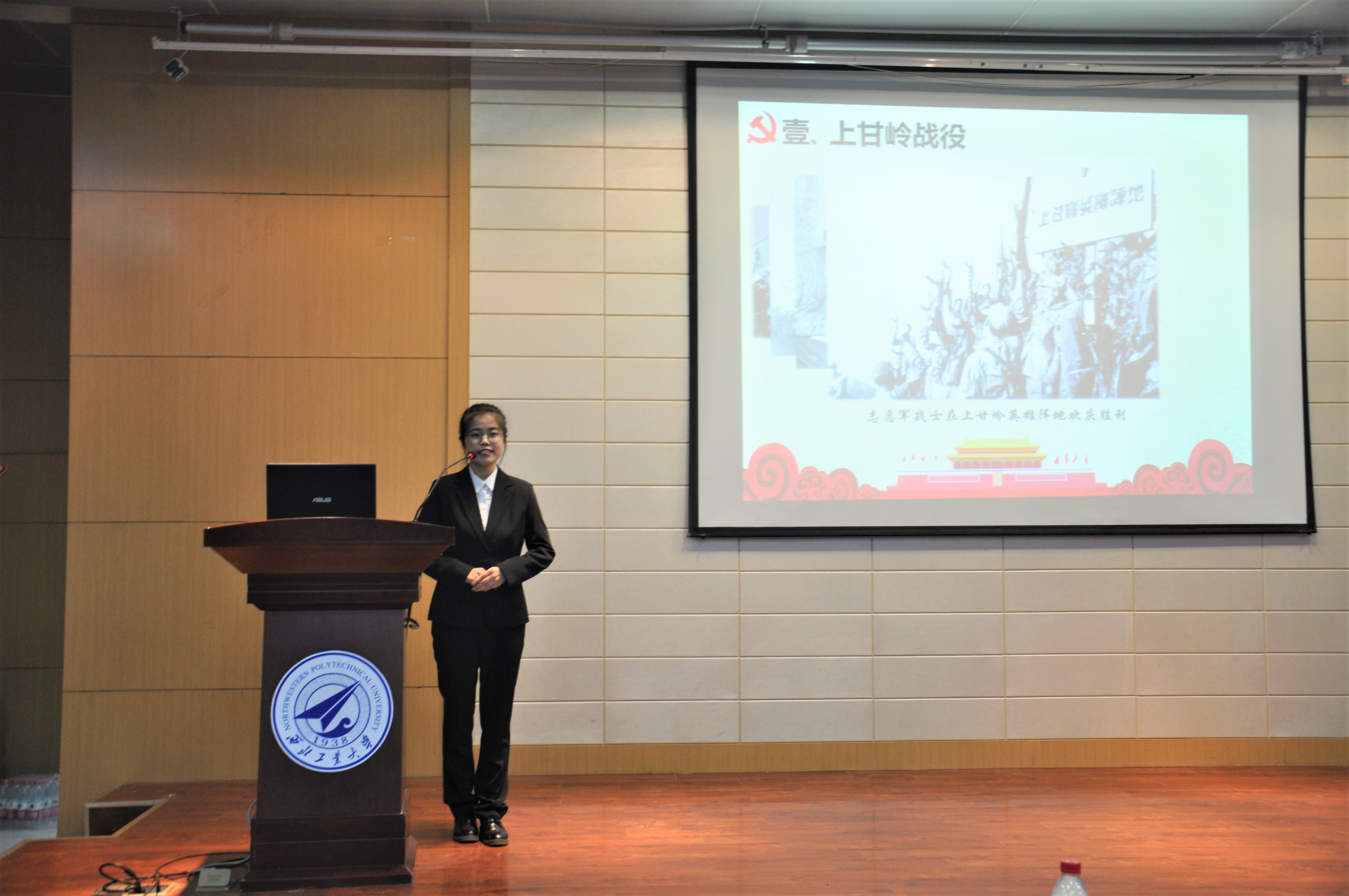 在肖鼎新作开场致词后,各位参赛选手在精心准备的PPT与动人的音乐的伴奏下为我们讲述了革命英烈们的光辉事迹。从嘉兴南湖的红船精神到抗美援朝的爱国精神,从四渡赤水的万里长征到凤凰城的浴火重生,从为人民服务的张思德同志到时代楷模张桂梅老师。每位选手都以饱满的热情,为我们讲述了建党百年以来千千万万共产党人艰苦奋斗、筚路蓝缕的奋斗征程,同学们声情并茂的讲述向我们展现了他们内心深处对党和国家最真挚的感情。