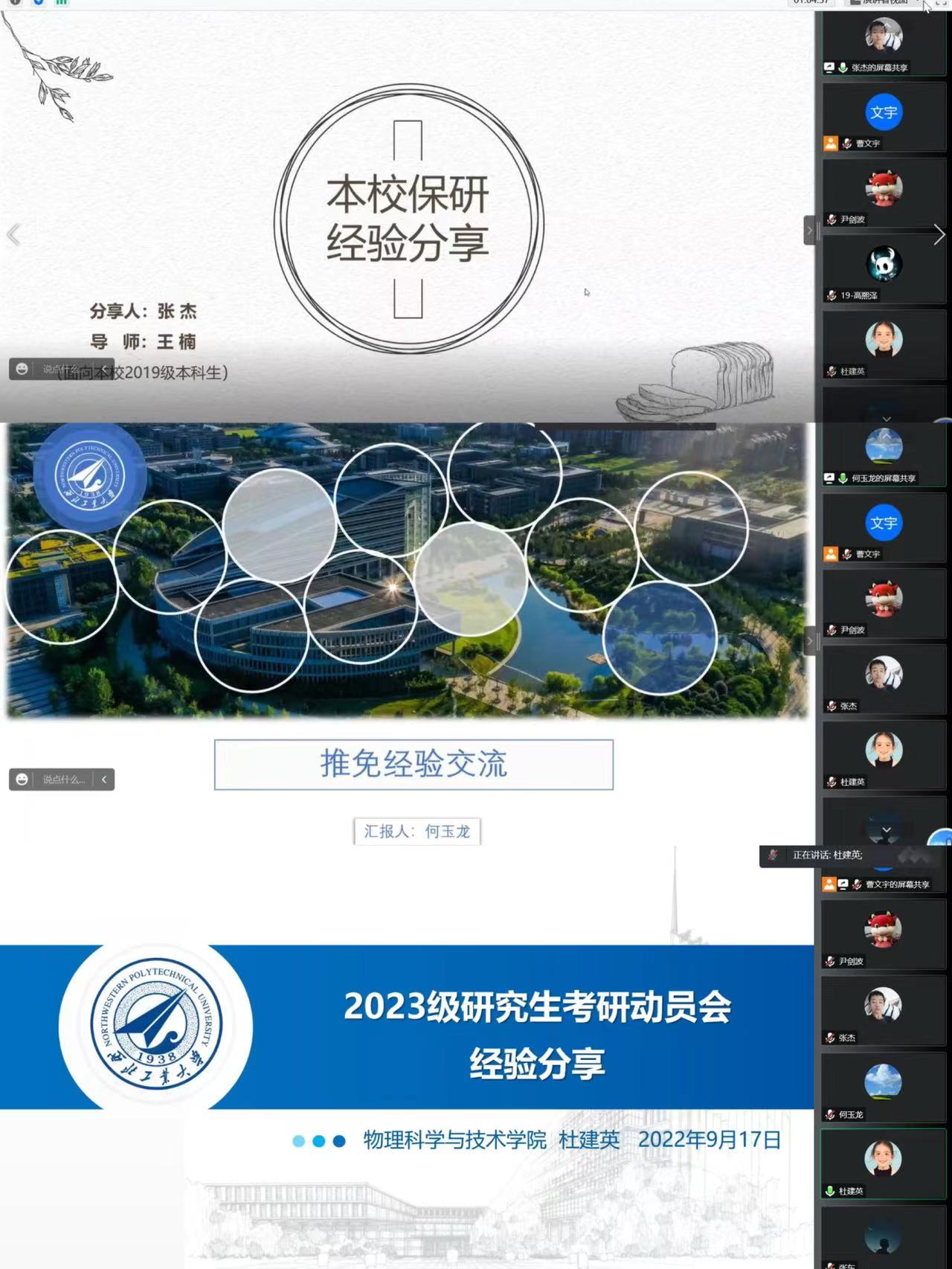 学生分享结束后,院长助理闫娜与参会同学展开积极互动交流,详尽回答了同学们关于推免和统考的各类问题,聆听同学们的需求,为后续正式开始招生工作做好准备。会议的最后,闫娜教授为所有学生献上亲切祝福:“星光不问赶路人,静候开花传佳音。希望各位同学推免顺利,考研理想,不负韶华,相约工大”。