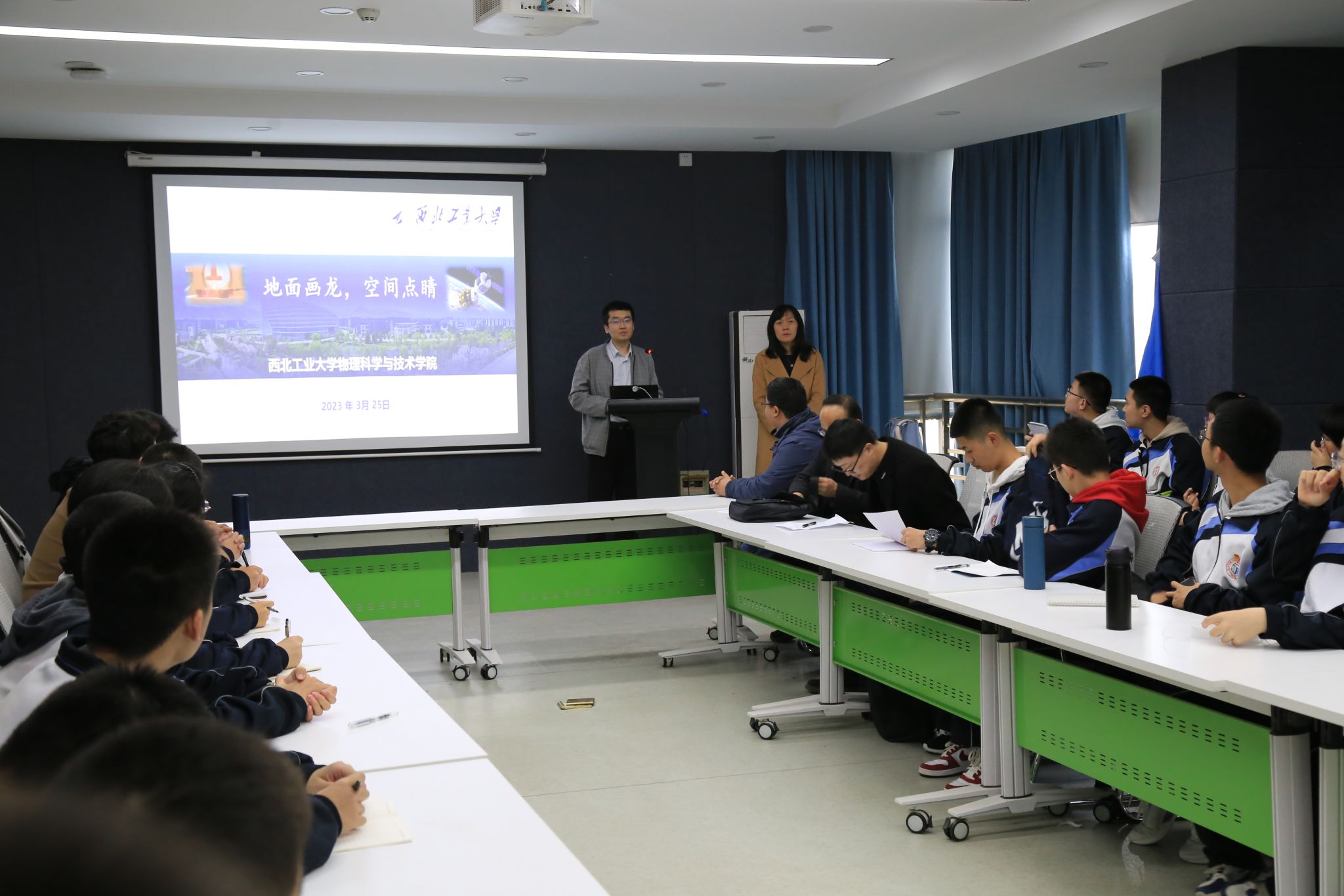 活动伊始,闫娜老师为研学师生作了题为《空间材料科学讲堂:地面画龙,空间点睛》的科普报告,向同学们展示了物理学知识的无穷魅力;并对学校招生和培养情况做了介绍。