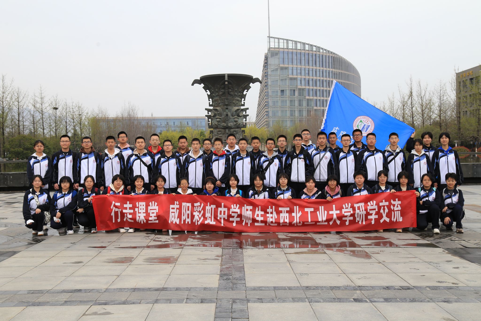 进行研学参观。学院院长助理闫娜、李东、宋坤等热情接待了咸阳彩虹中学研学访问团。