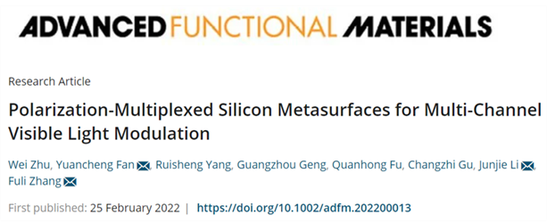 相关成果以“Polarization-Multiplexed Silicon Metasurfaces for Multi-Channel Visible Light Modulation”为题发表于高影响力学术期刊《Advanced Functional Materials》(DOI: 10.1002/adfm.202200013; IF:18.808)。西工大成人小说网