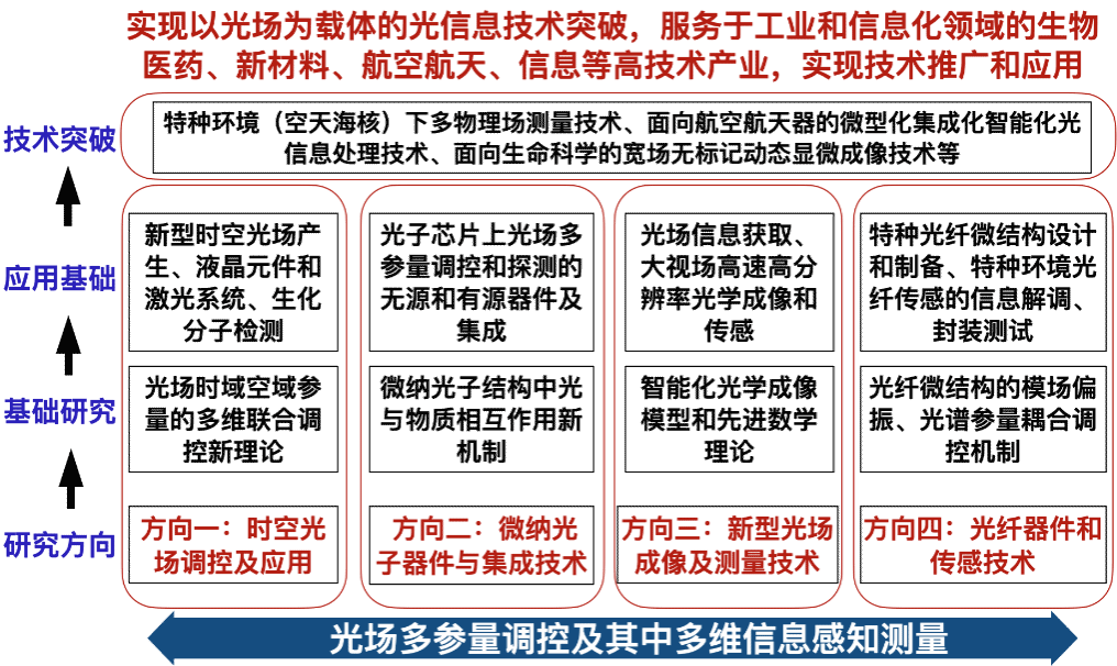 面向未来信息技术对光场多维度调控的需求,以及与材料、能源、生物医学、空间技术等领域的交叉,拟开展新型时空光场的产生原理、调控技术的原创性研究,突破新型光场的产生、调控及其器件的小型化、集成化、智能化等关键技术,进而探索新型时空光场的前沿性应用。包括:时空光场的产生、调控原理;时空光场调控的元器件与集成;新型时空光场调控的新应用。
