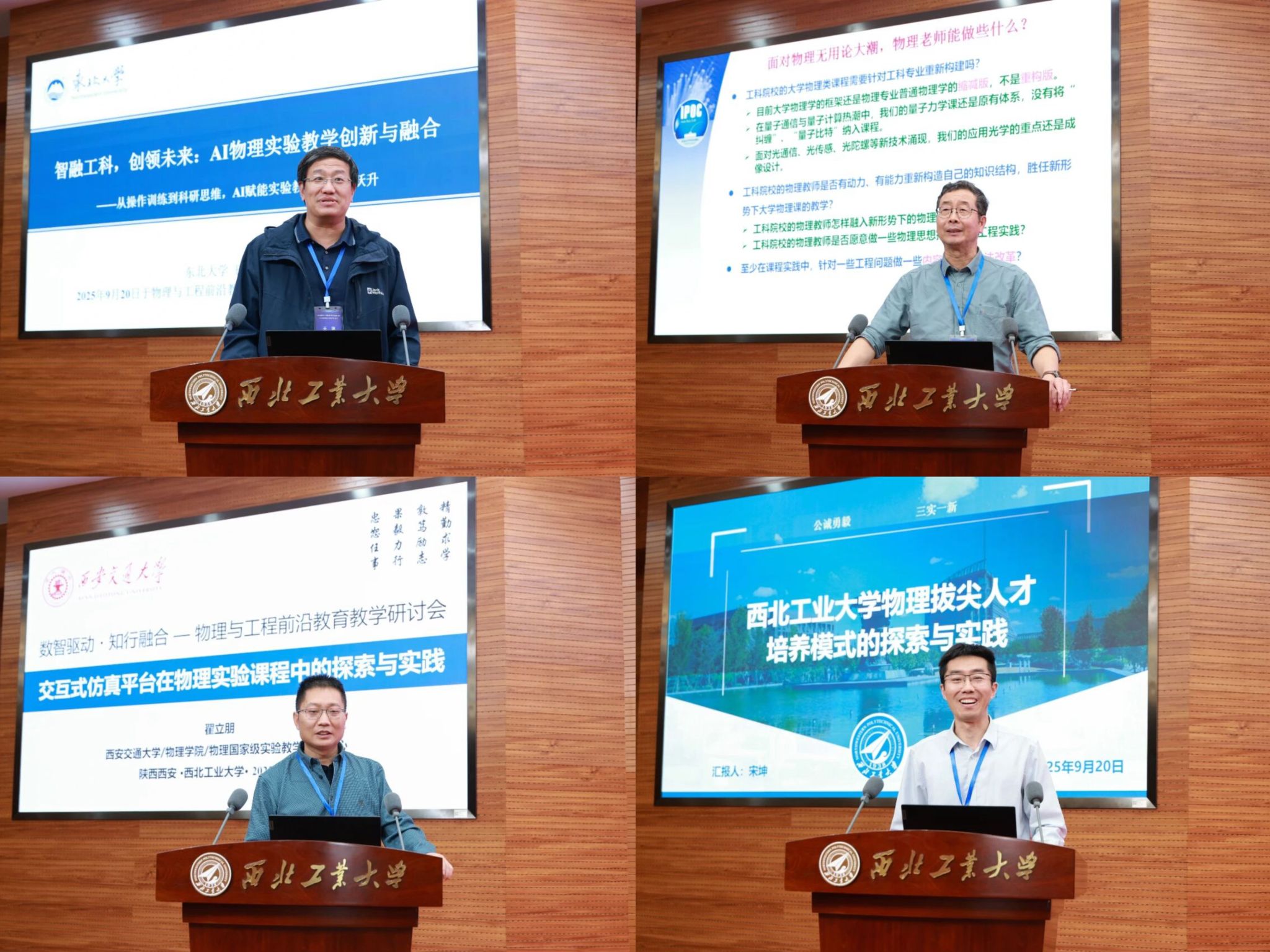 教务部部长王海鹏教授分别做了题为“工程教育变革中物理课程面临的挑战和应对”“AI时代拔尖人才培养中的学术道德教育:挑战和应对”“光子学的工程应用”及“总师育人文化融入物理与工程教育的探索与实践”的精彩报告,引发了与会学者的深入思考和热烈讨论。